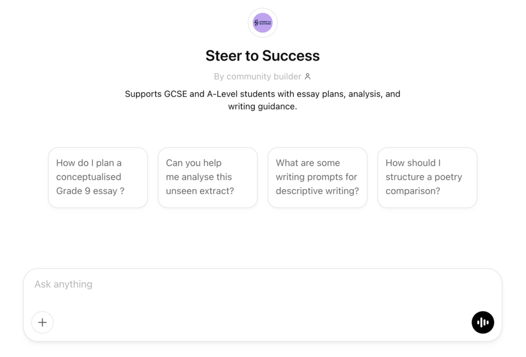 This tool is designed to support your learning, not do the work for you! It won’t write or rewrite essays, and it doesn’t replace teacher marking, but it’s a powerful resource to help you improve your writing independently.